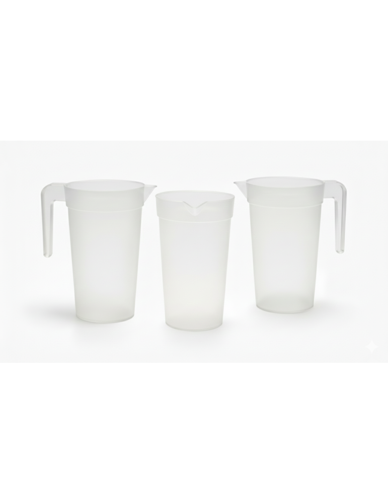 Tous les pichets sont fabriqués en PoplyPropylène PP5 et sont empilables pour faciliter le stockage.